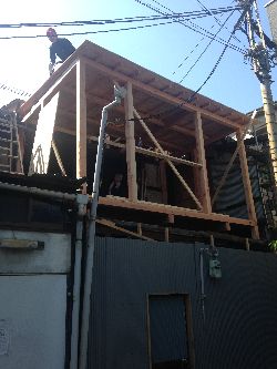 アパートは2部屋作りました。階段を新設し、上ったところにアパートの玄関があります。