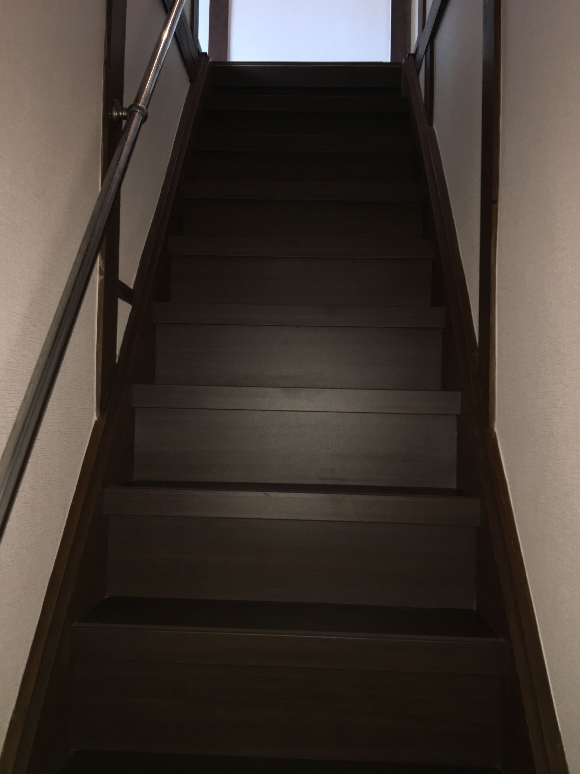 そして大建 リフォーム階段部材を現状の階段に合わせてカット押して貼っていきます。