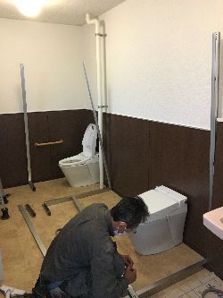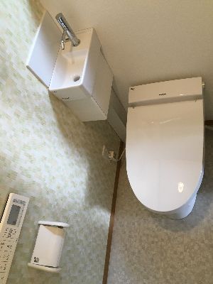 事務所のご近所さんから、トイレと洗面化粧台の入れ替え工事をご依頼いただきました。