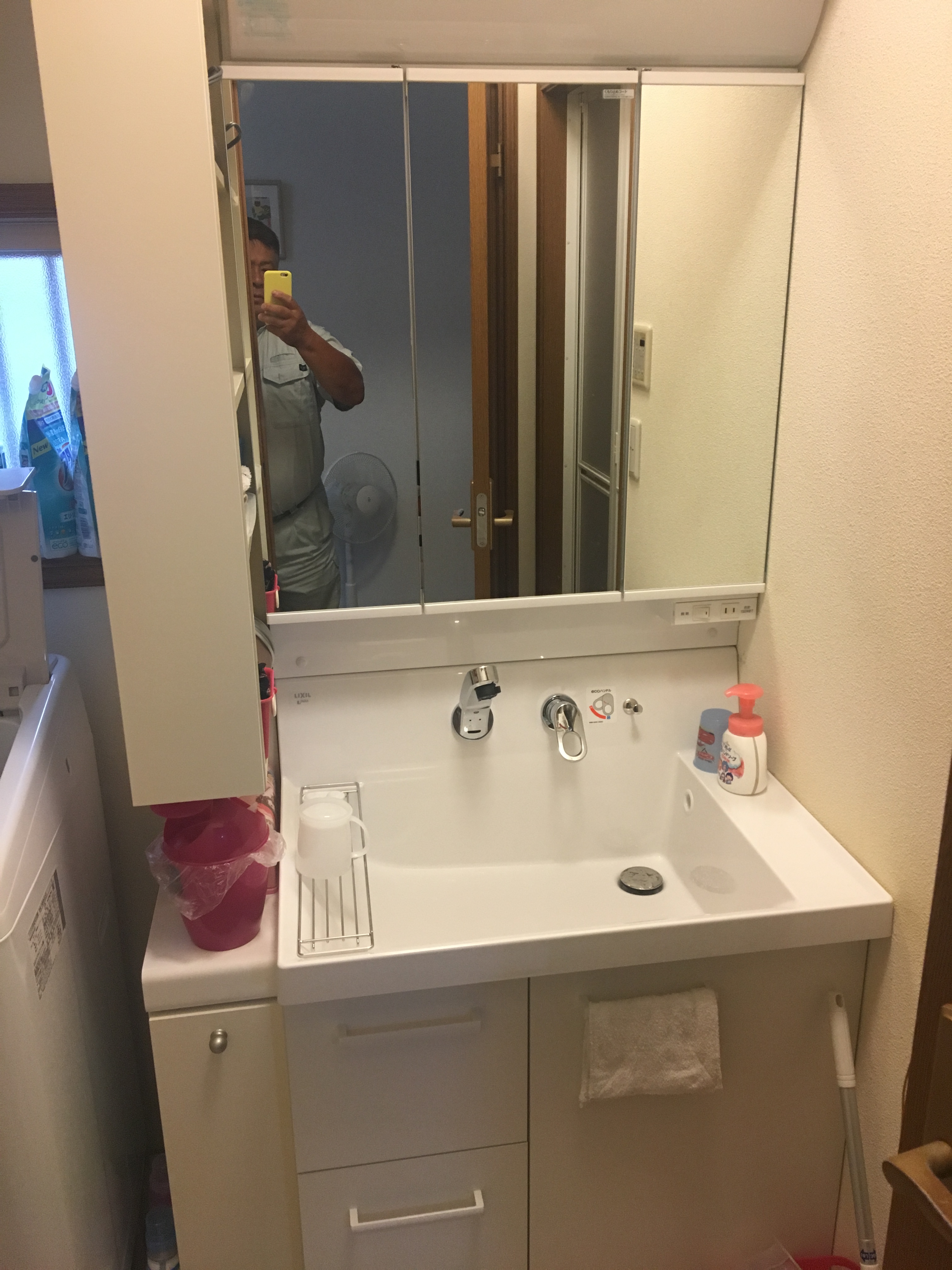 13年前に息子さんの新居のリフォームでお世話になった尼崎市のK様から洗面化粧台のボウルが割れたので洗面化粧台を取り換えたいとのご依頼をいただきました。