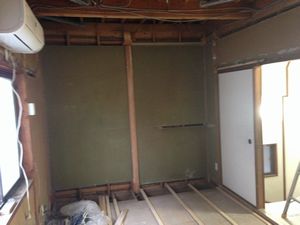 押入れと床の間を解体し、壁を真壁から大壁に。
