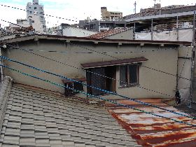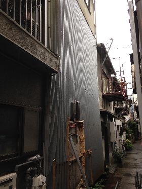 建物の水洗いは周りに迷惑がかからず洗濯物も出ていないので雨の日に限ります。