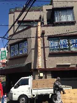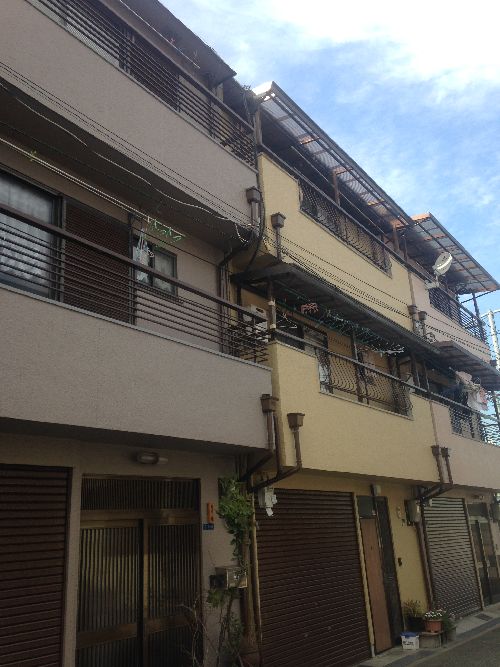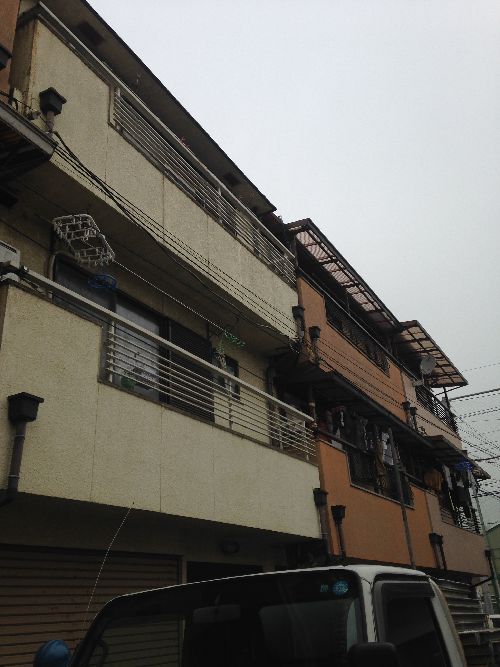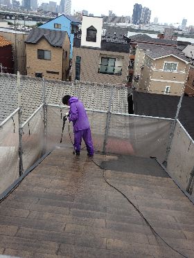 建物の水洗いは周りに迷惑がかからず洗濯物も出ていないので雨の日に限ります。