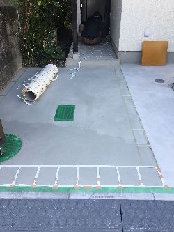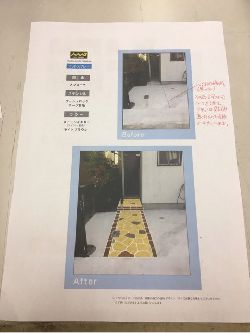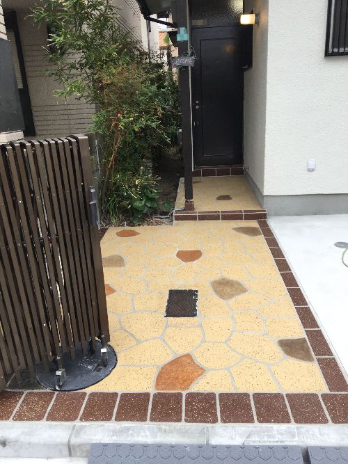 まあ、いわいるお絵かきの様なものですが、石や、タイルのように割れず、タイヤ跡がつきにくく、主に商業施設や公共施設、集合住宅のアプローチなどに採用されています。