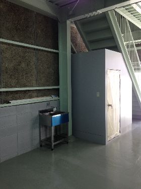 階段下のこの辺りにトイレと手洗いを設けます。ついでに土間の塗装もご依頼いただきました。