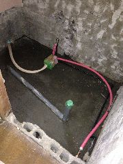 配管が終わればトイレの建物を建てます。公共枡を設けてもらい、本管と接続します。