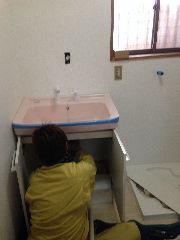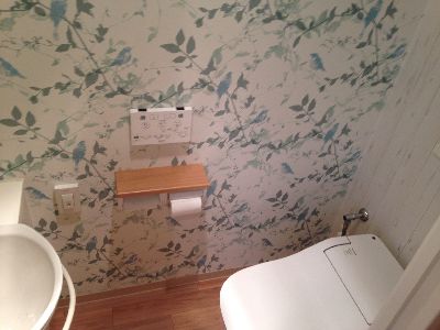 完成です。トイレ横には手洗いを設けました。トイレ内部は掃除のしやすいようにCF貼りです。