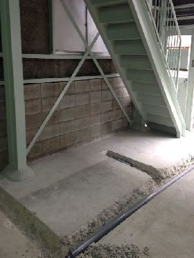 階段下のこの辺りにトイレと手洗いを設けます。ついでに土間の塗装もご依頼いただきました。